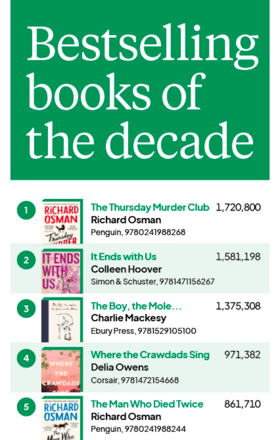 Richard Osman takes No. 1 and No. 5 spots in bestselling books of the decade so far
